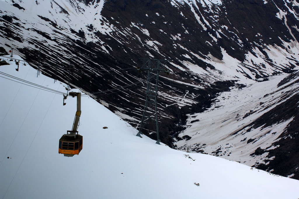 最好的就是拍紅色火車行駛於這座橋上,領隊也都會先告知我們要準備好相機拍什麼景色,甚至他在火車上閉眼休息時,會突然醒來拿著DV要大家準備拍照,且這些景色都具特色,老師果真專業。老師先帶我們去聖摩里茲(St. Moritz)附近的抵佛勒山脈,這裡是滑雪勝地,到處可見拿著雪橇及穿雪靴的人,也看到不少人穿長毛象的衣服及褲子,此時感覺自己與他們的距離感變近,因為我也是穿著全身長毛象,呵呵。